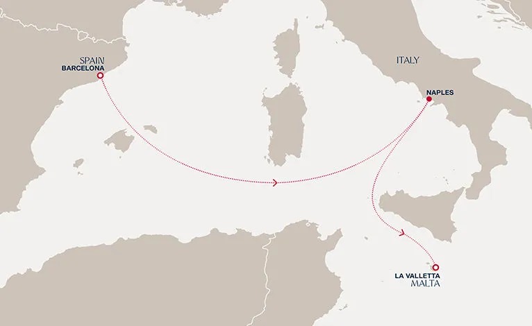 Маршрут круиза: Барселона - море - Неаполь / Помпеи - море - Валлетта