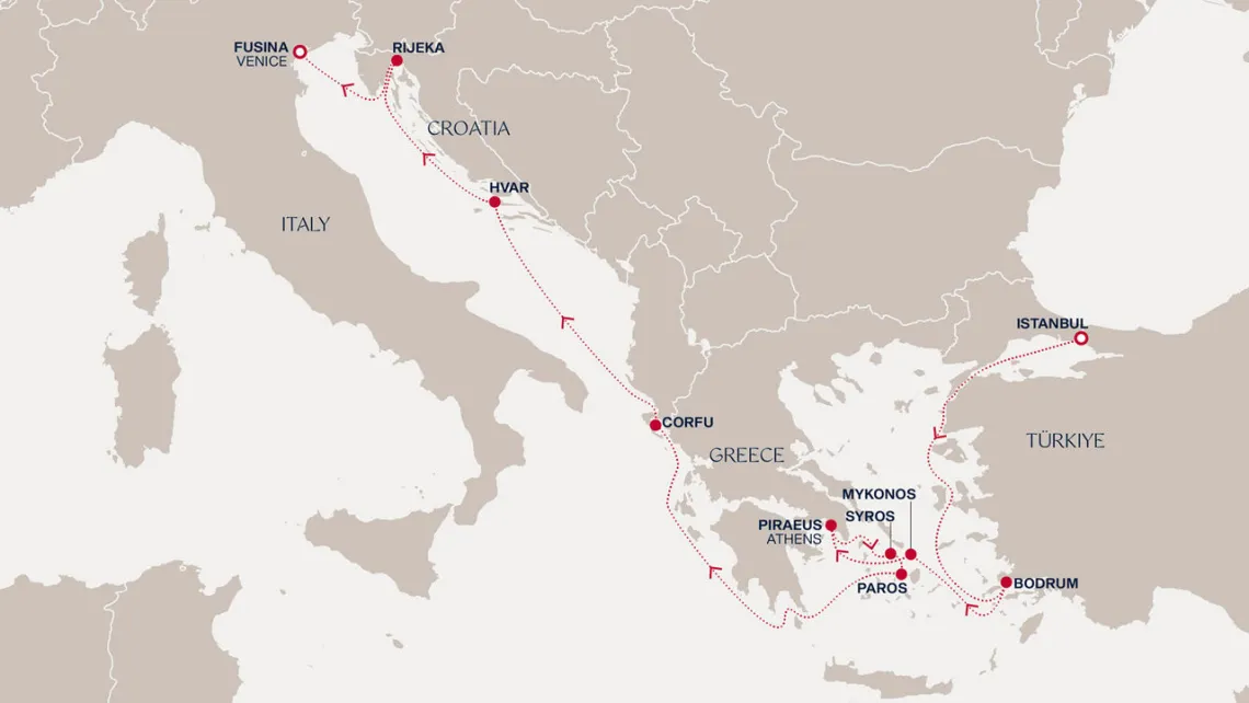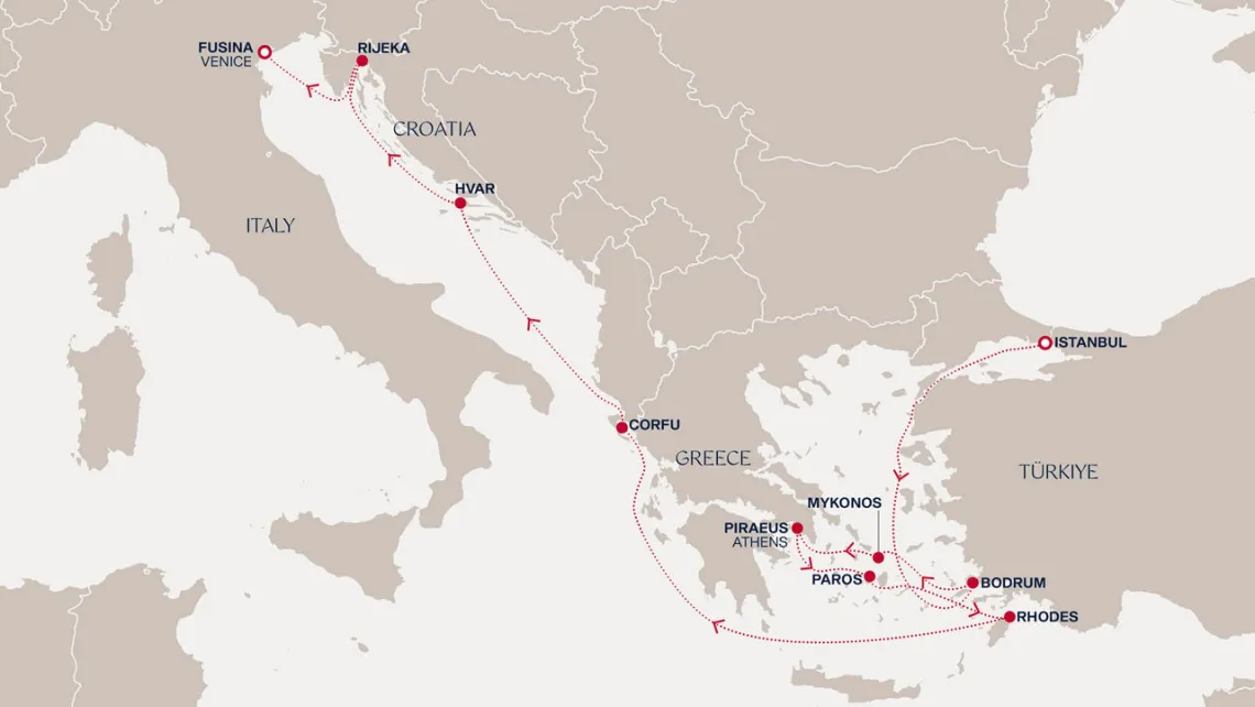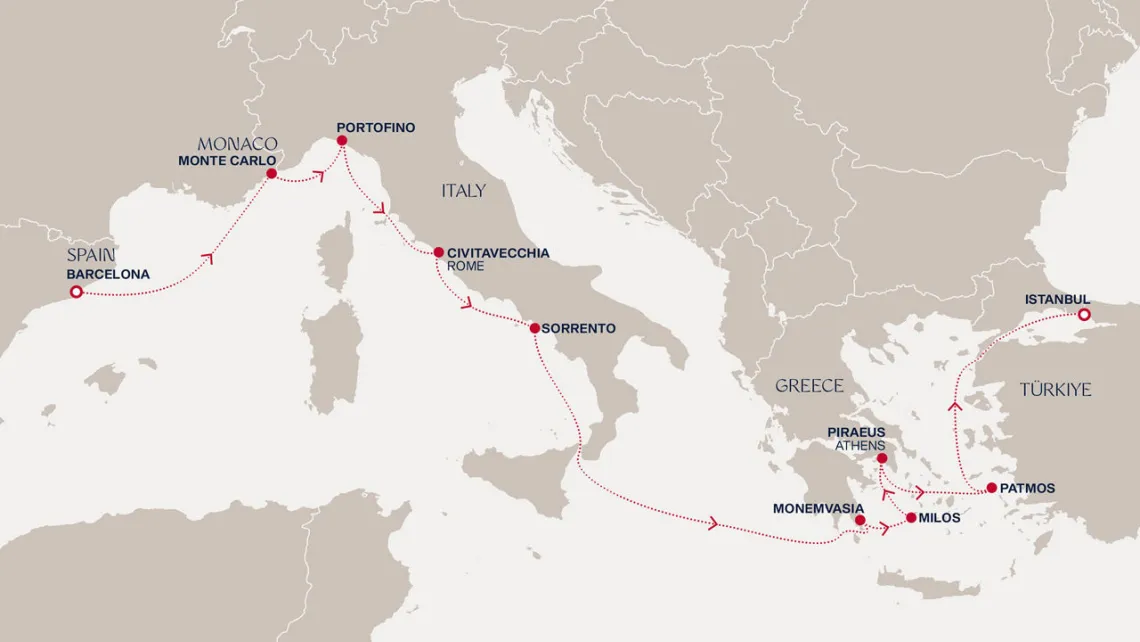 Маршрут круиза: Фор-де-Франс, о. Мартиника - Пуант-а-Питр, о. Гваделупа - море - Филипсбург, о. Синт-Мартен - Сент-Джонс, о.Антигуа - Бастер, о. Сент-Китс - Розо, о. Доминика - Фор-де-Франс, о. Мартиника - Пуант-а-Питр, о. Гваделупа - Кингстаун, о. Сент-Винсент - Бриджтаун, о. Барбадос - море - Порт-оф-Спейн, о. Тринидад - Сент-Джорджес, о. Гренада - Фор-де-Франс, о. Мартиника