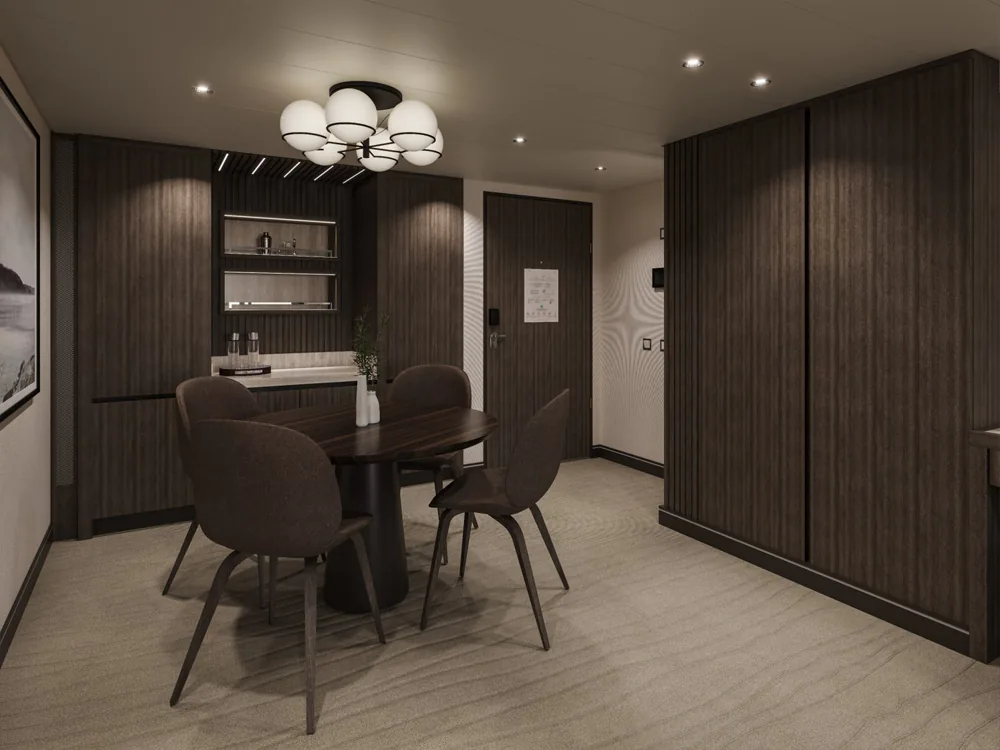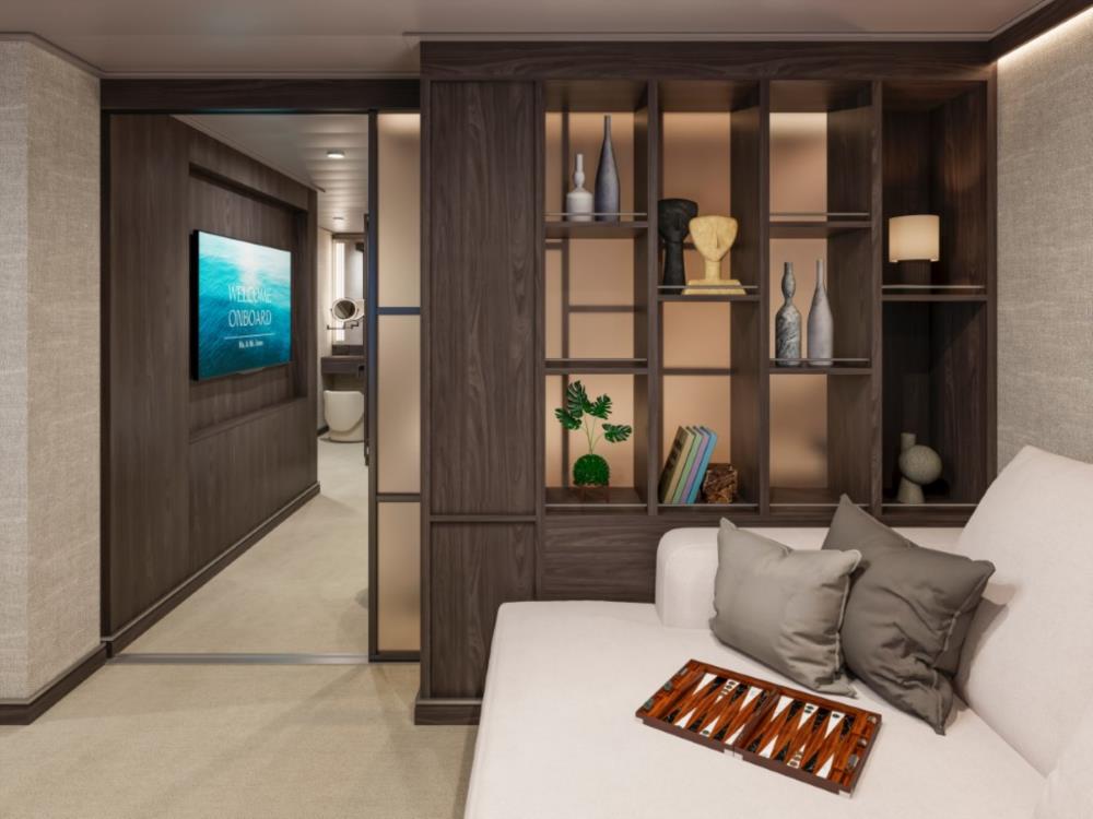 Гости EXPLORA III будут проживать в элегантных, просторных, обустроенных по самым современным стандартам комфортабельности сьютах, пентхаусах или резиденциях. Каждый из 461 люксов лайнера создан с целью максимального единения и связи с океаном, так называемые «дома в море» – все они с панорамными окнами с видом на океан и приватными террасами для принятия солнечных ванн.