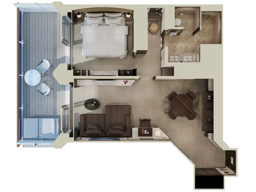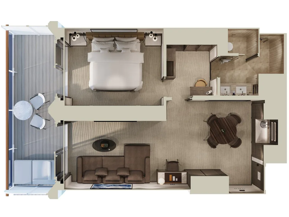 Площадь каюты: ~ 74 м2 (балкона ~ 75 м2)
