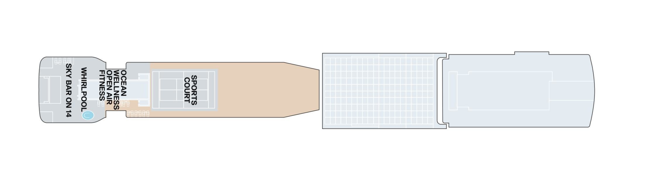 Площадь каюты: ~ 63 м2 (балкона ~ 14–18 м2)