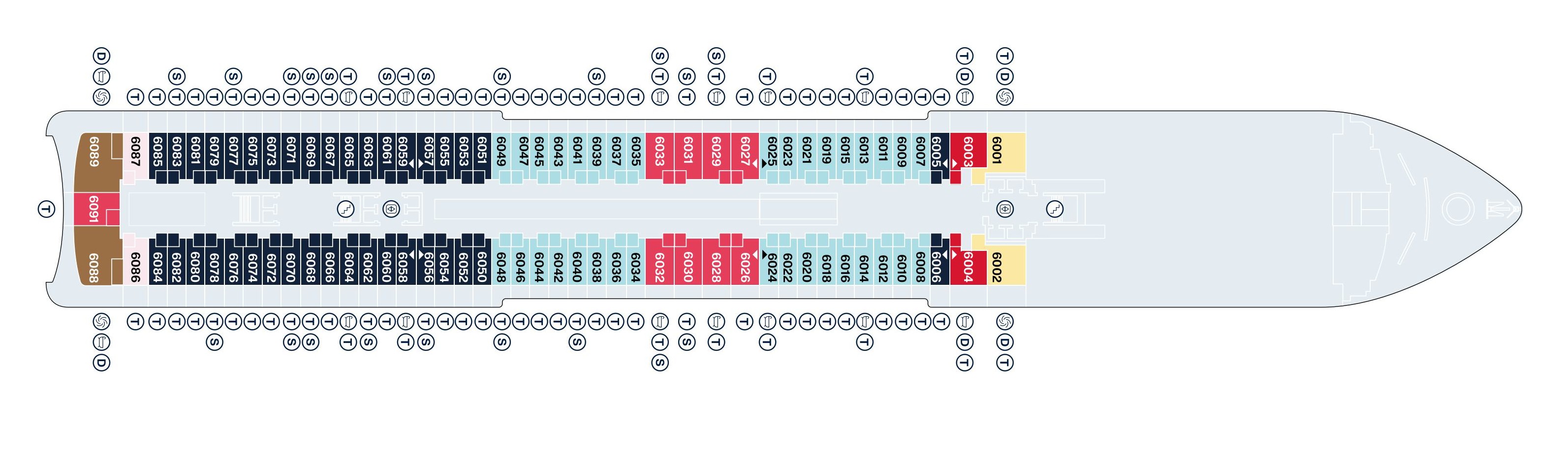 Площадь каюты: ~ 60 м2 (балкона ~ 53–66 м2)