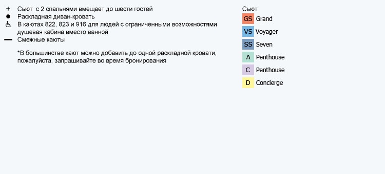 Расположение каюты: 6, 7, 8, 9, 10 палуба